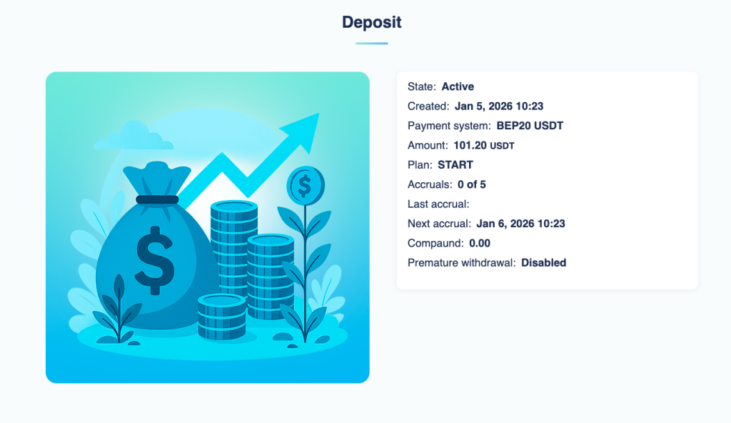 Важно помнить, что Блог Охотников за Деньгами не побуждает Вас к открытию депозита только потому, что мы написали статью о данном проекте. Мы обозреваем HYIP проекты и делимся информацией о том куда вкладываем деньги. Помните, что остальные действия и решения Вы принимаете самостоятельно.