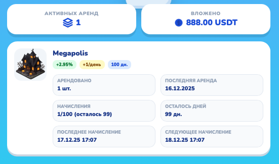 - Доходность: 2.1% в сутки